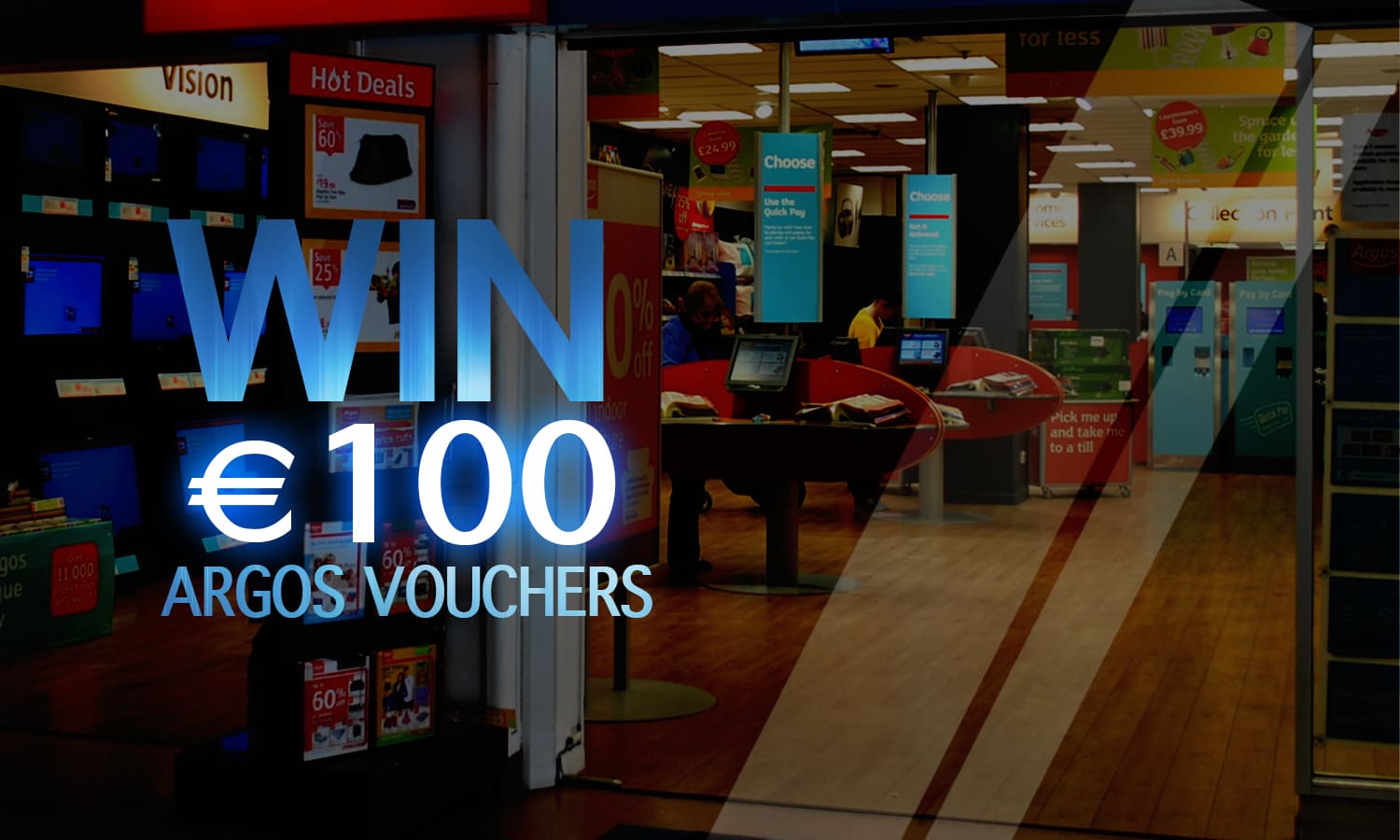 Argos - the shop where you can buy anything! How would you spend €100? Toys for the kids, a luxury four poster king size bed, or maybe you’d like a DIY or Electrical goods for house for the garden? Well, whatever it is.. Argos has the lot. So go on! Enter today and you could soon be filling out that little blue slip in an Argos near you! [hide]